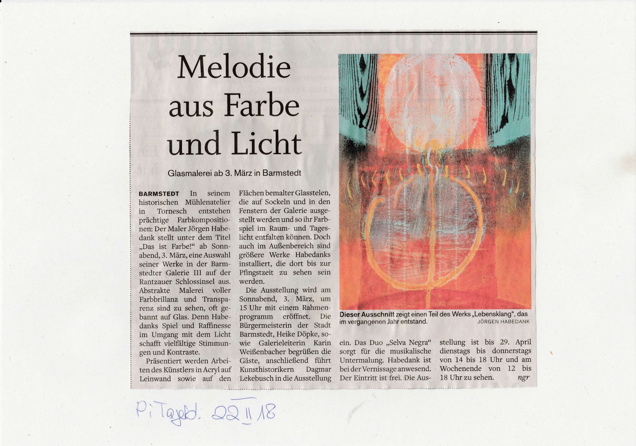 Jörgen Habedank lebt und arbeitet im schleswig-holsteinischen Tornesch. In seinem historischen Mühlenatelier entstehen prächtige Farbkompositionen sowie Entwürfe für moderne Glasgestaltungen.